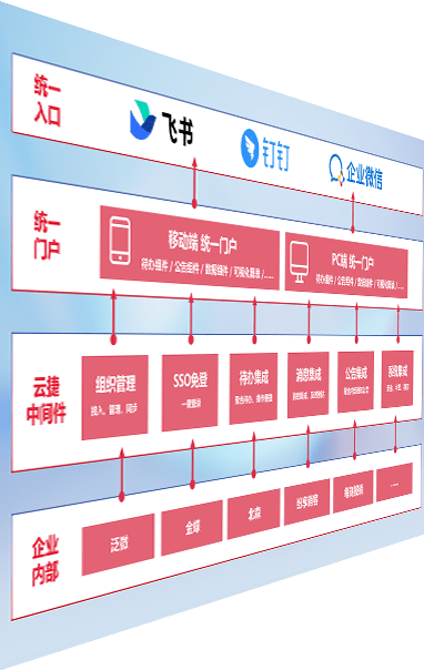 对协作平台提供支持服务,,支持企业应用与协作平台对接,,,,包含组织同步、、、、消息集成、、、、待办集成等。。。支持目前主流的协作平台:钉钉、、、、企微和飞书。。。。